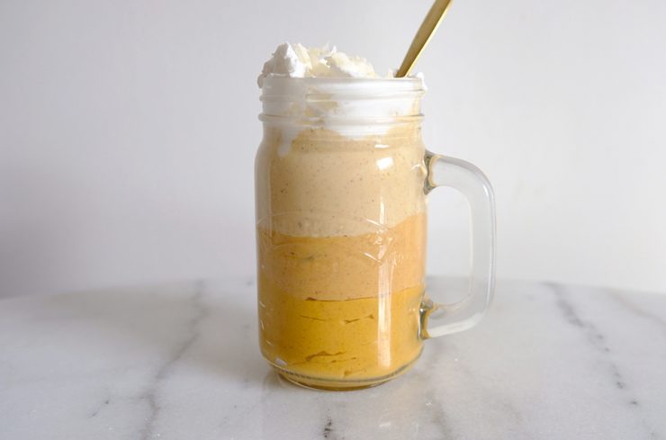 Bal kabağı zamanı hazır başlamışken bu lezzetli, enerji deposu smoothie‘yi yapmadan olmazdı. Bal kabağı yerine istersen tatlı patates de kullanabilirsin. Ayrıca ben bu şekilde kat kat yapmaya üşenirim diyorsan da tarifin sadece 1. kısmını kullanabilirsin.