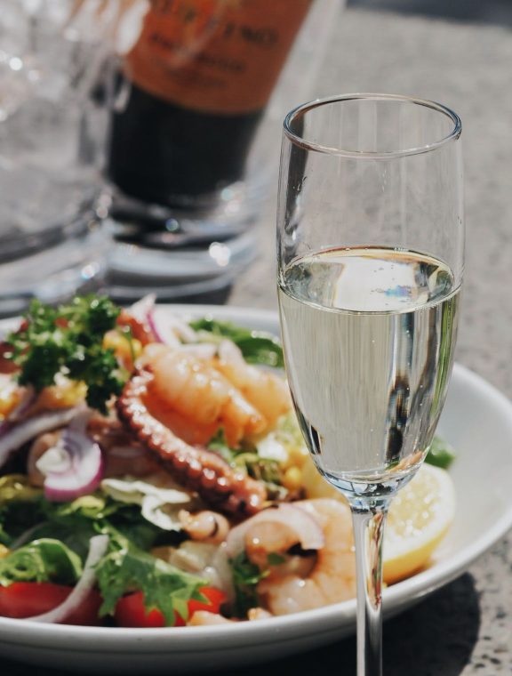 Bunun yanı sıra Thai noodle ve sushi gibi Asya yemekleri, badem, fındık, kuşkonmaz, somon karides, kalamar, yengeç türevi deniz kabukluları ile ızgara balıklar ve beyaz soslu makarnalar da Prosecco ile uyum sağlamakta.