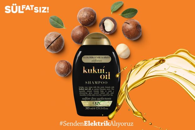Kabaran ve elektriklenen saçlara karşı size önerimiz OGX Kukui Oil… OGX Kukui Oil içeriğindeki Hawaii fındığı Kukui yağından gelen yoğun nemlendirici özelliğiyle saçlardaki elektriği alıyor yerine uzun süre yumuşacık, sağlıklı, ışıl ışıl saçlar veriyor. Antioksidan ve vitamin bakımından zengin Kukui fındığı yağı ile saçlarınız her mevsim pürüzsüz, parlak ve sakin bir görünüme kavuşuyor.