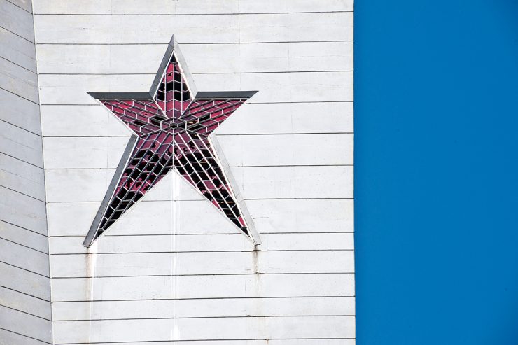Anıtın hemen yanındaki kule, komünist partinin yıldızını taşıyor. Yıldız üzerindeki her bir “Ruby” cam, Ukrayna’dan özel olarak getirilmiş. Maalesef bu camların da bir kısmı kırılmış ve düşmüş durumda. Önceden bu kuleye de çıkılabiliyorken, artık tamamen yasak.