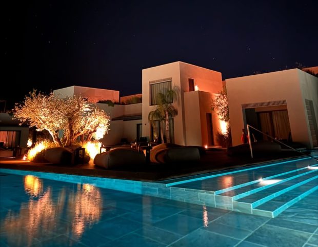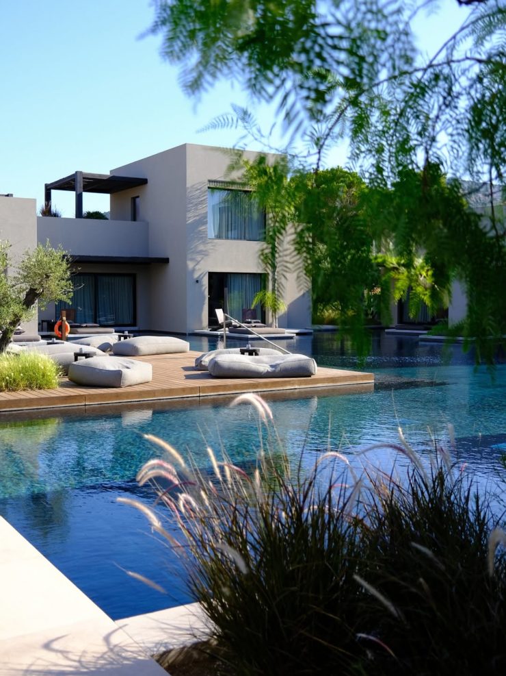 Casa Cook Samos, geleneksel Yunan köylerinin ruhunu çağdaş dokunuşlarla yeniden yorumluyor. Odalar doğal malzemelerle – taş, ahşap, deri – döşenmiş; kimisi havuza açılıyor, kimisi panoramik deniz manzarasına bakıyor. Villada kalırsanız, ateş çukuru olan özel bir bahçe ve orman esintili açık duş sizi bekliyor.