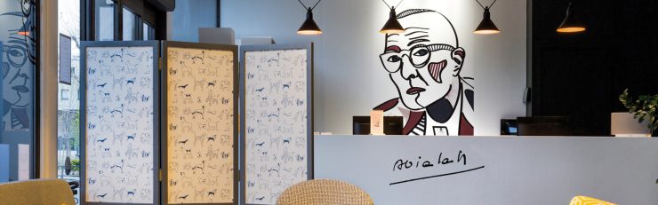Otelin her katında yazardan bir iz bulmak mümkün. Koridor ve duvarlarda sergilenen bir obje veya afiş ile yazarın külliyatından oluşan bir kitaplık, otel girişinde misafirlerini bekliyor.