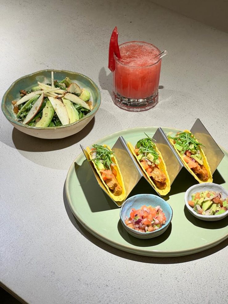 Tekrar OMM INN’in avlusunda buluşuyoruz, akşam yemeği için menüden lezzetli yemeklerin tadına bakıyoruz. Tadı damağımızda kalan lezzetler arasında humuslu-mücverli wrap ve karnabahar pilavı var.