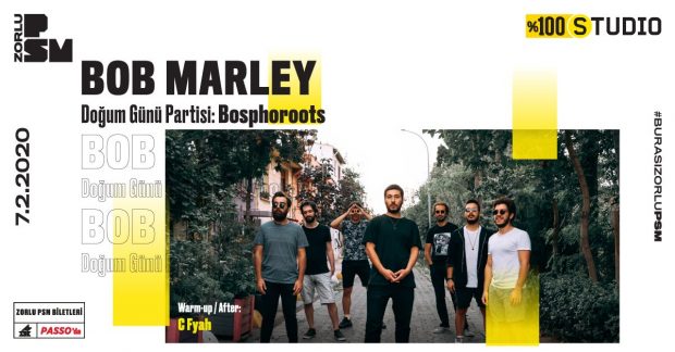 Roots reggae’yi temel alarak müziğinde dub, reggae fusion ve reggae revival türlerini harmanlayan Bosphoroots, Bob Marley’nin 75. yaşını kutlamak için %100 Studio’da olacak.