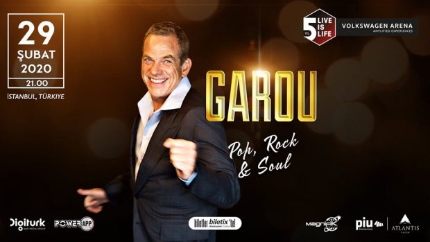 Notre Dame de Paris müzikalinin yazarı, ünlü şair ve yapımcı Luc Plamondon’un, Montreal’de bir barda elinde gitarıyla şarkı söylerken keşfedilen Garou, aynı müzikaldeki Quasimodo performansı ile tüm dünyayı kendine hayran bırakmıştı. Ülkemizde de çok geniş bir hayran kitlesine sahip şarkıcı ikinci kez İstanbul’da sahne alacak. Onun imza niteliğindeki sesinden ‘Belle’, ‘Gitan’, ‘Sous le vent’ ve ‘Seul’ hit şarkılarını dinlemek istemez miydiniz?