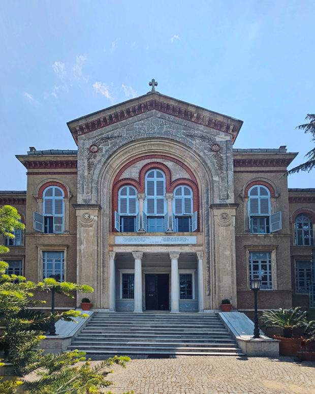 Adanın en eski sakinlerinden ama restorasyonu ile yeniden hayat bulan bir mekandayız. 1870’lerde İskenderiye Patriği Sofronios’un yazlık evi olarak inşa edilen yapı 1922-1967 yılları arasında okul olarak kullanılmış. Taş Mektep ismi de buradan geliyor. İBB Miras ekibi tarafından restorasyonu tamamlanan ve yeniden hayat bulan Taş Mektep’de “Yok Olmadan” sergisini gezebilirsiniz.