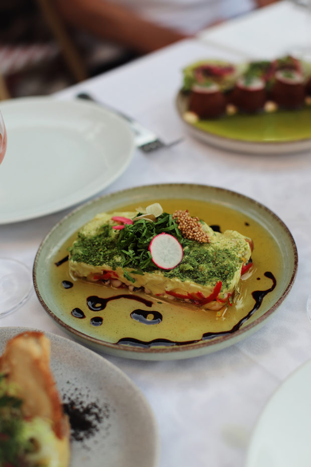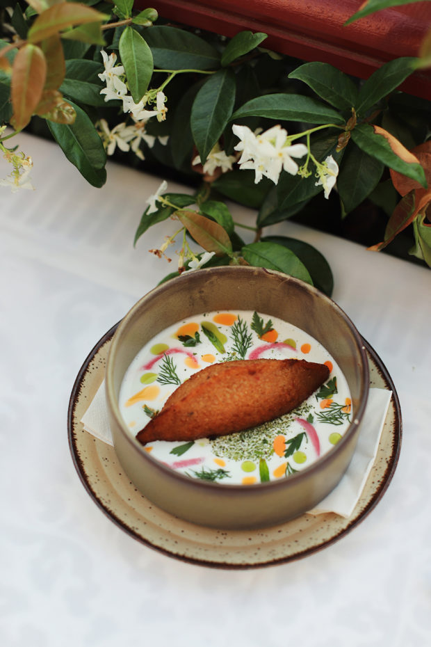 Fonda güzel bir müzik, önümüzde ise sakin sakin süzülen ada vapuru ve masamızda Şef Oğuz Altuner’in adanın çok kültürlü yapısından ilhamla hazırladığı menüsü var. Geleneksel lezzetleri yenilikçi bir yorumla sunduğu menüde tadımladıklarımızı şöyle bir sıralamak isteriz: Boşnak Söğürme, Fava Teksir, Çiğ Köfte Tartar, İçli Topik ve Saganaki.