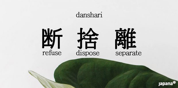 Bu kelime üç farklı ‘kaji’nin birleşiminden meydana gelir. Bileşikteki üç kanji “reddetme – atma – ayrı” anlamına gelir: 断 dan – reddetmek, 捨 sha – atmak, 離 ri – ayırmak. Hayatınızı, hem fiziksel hem de zihinsel olarak toparlamak ve dağıtmamak adına izlemeniz gereken üç adımdır bunlar. Kısaca da aşağıdaki gibi özetlenebilir: