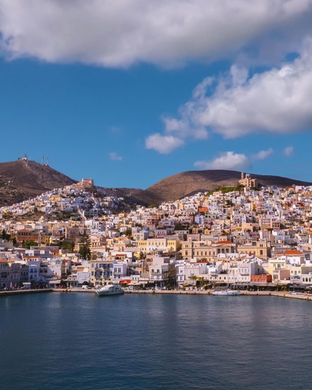 Kiklad Adaları arasında yer alıp Kikladlara pek benzemeyen haliyle dikkat çekici bir ada Syros. Bölgenin alışılagelen bembeyaz köyleri ve yel değirmenleri yerine adaya renkli bir İtalyan havası hakim. Geçmişte Venedik himayesinde olmasının bunda etkisi büyük. Bu renkli olma hali adanın kültürüne de yansıyor. Sadece yazın değil yıl boyu Syros’ta dijital sanat, film ve müzik festivallerine denk gelmek mümkün.