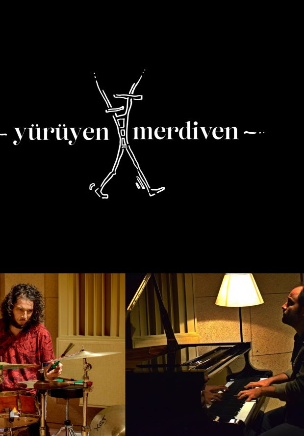 Yürüyen Merdiven, yirmi yıla yakın bir dostluğun hikâyesi ve onun müziğinin yolculuğu. İlk akla gelen mekanik bir yürüyen merdivenden çok; iki bacaklı ve seven, koşan, dans eden, nefes alan bir yürüyen merdiven. Davulun melodik yaklaşımıyla piyanonun perküsif karakterinin iç içe geçtiği; canlı ve muzip bir kimlikle çıktığı yolda, rastladığı herkesi kendisiyle birlikte yolculuğa çıkarmayı bekleyen, buna hevesli bir Yürüyen Merdiven. Pyanoda Yiğit Özatalay, davulda Mustafa Kemal Emirel’den oluşan bir ikili.