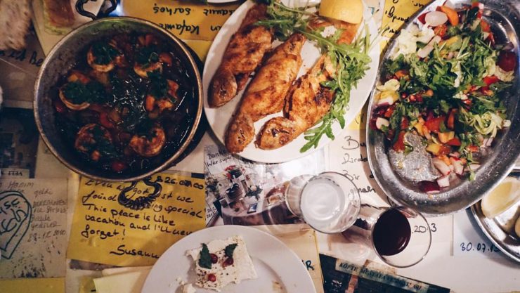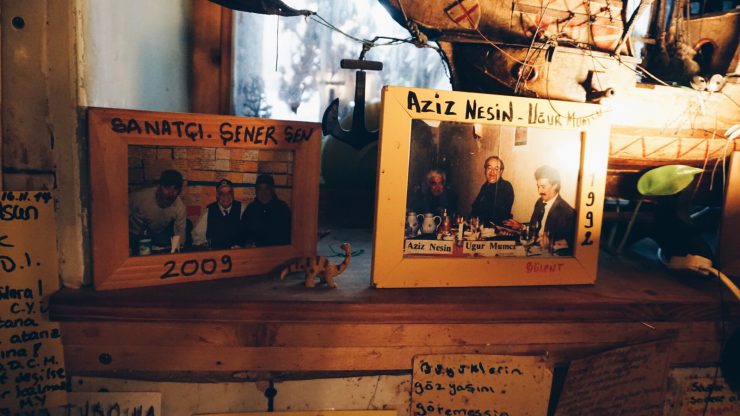 Türklerin en yoğun bulunduğu Avrupa şehri olan Berlin’de rakı balık yapmadan dönmeyelim dedik. Ergun Baba’nın hikayesi çok eski ve fazla, içeri girer girmez gerek fotoğraflar gerek ziyaretçilerin bıraktığı minik notlarla süslü her yer. Aziz Nesin ve Uğur Mumcu’nun Ergun Baba’ya geldiği günün anısına çekilmiş bir fotoğrafın hemen yanındaki masaya oturuyoruz. Kadehler doğusu batısından seneler boyunca boyunca ayrı tutulmuş, evim gibi şehir olan Berlin’e!