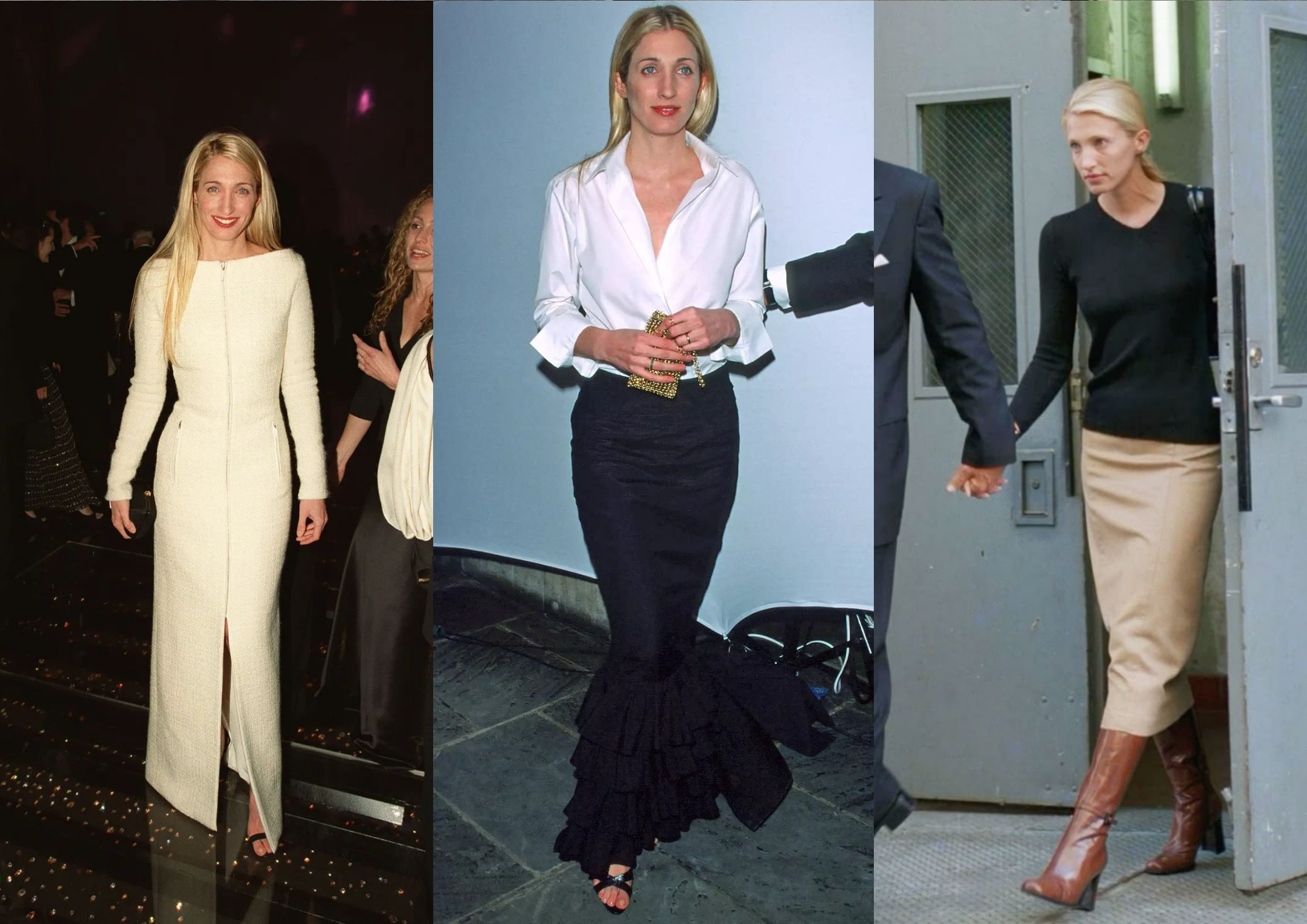 Üstelik bu imaj tamamen tek tip değil. Zaman zaman daha casual görünümler de var, bu yüzden bugün hâlâ “Converse giyer miydi?” tartışması çıkabiliyor. Aslında mesele Converse’in kendisi değil. Carolyn’in stilinin, kusursuz ama donuk bir vitrinden değil, gerçek hayattan gelen bir sade şıklık hissi taşıması.