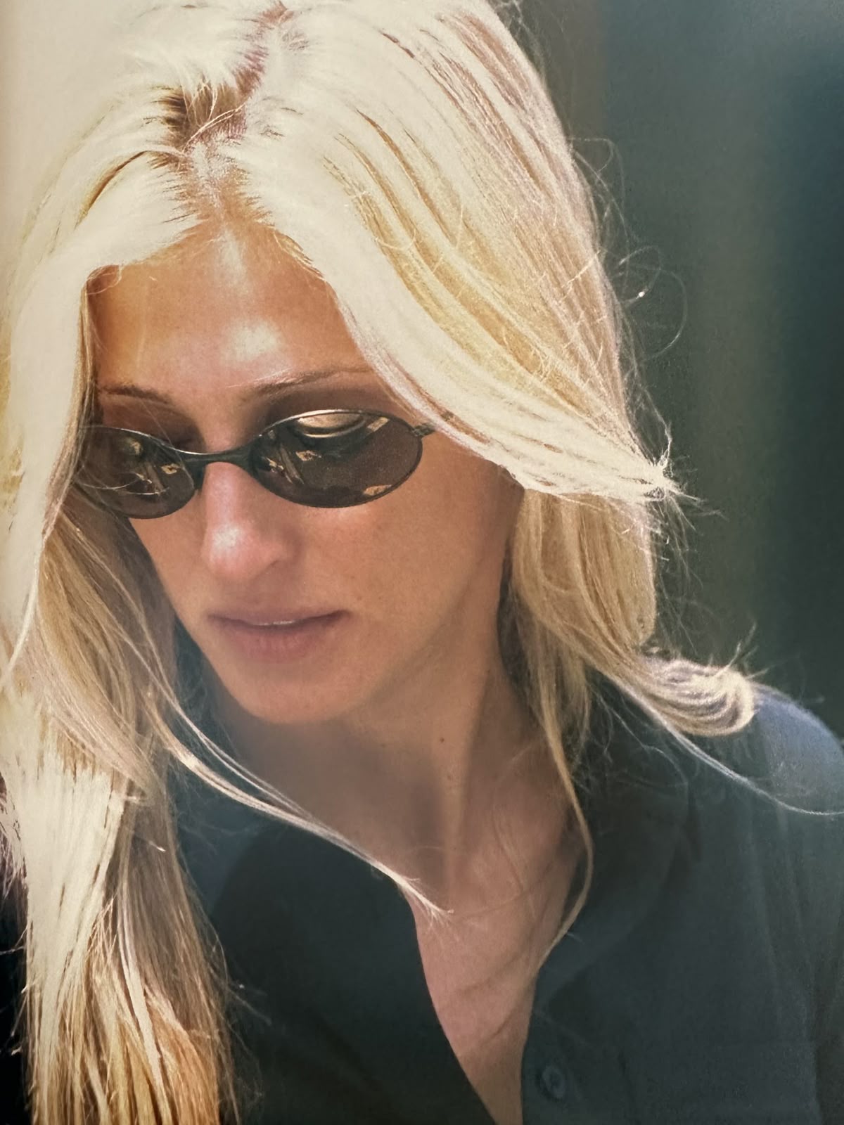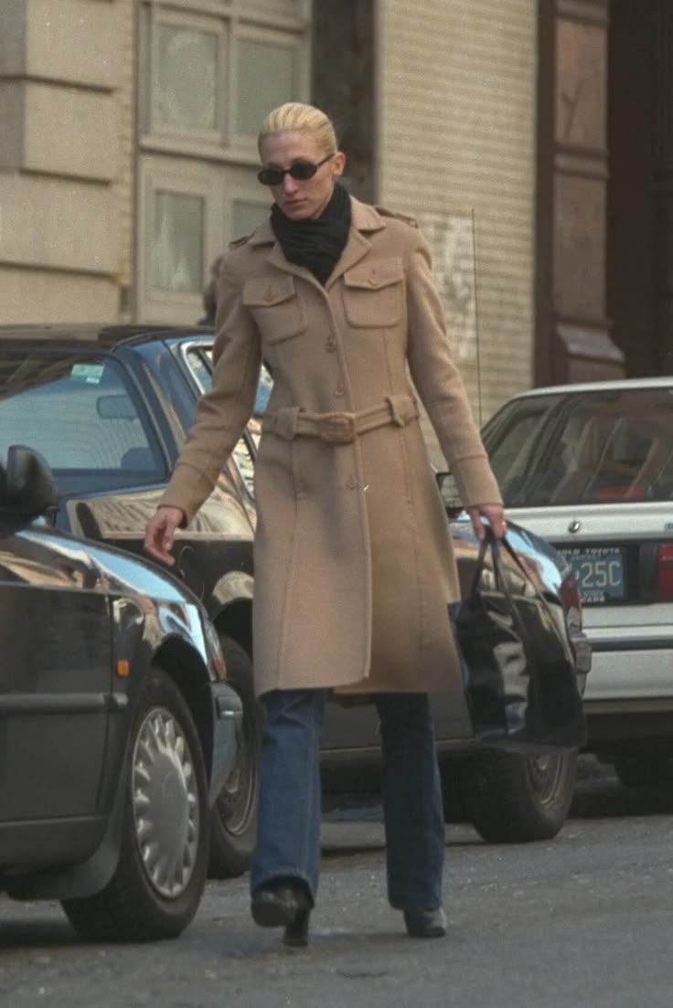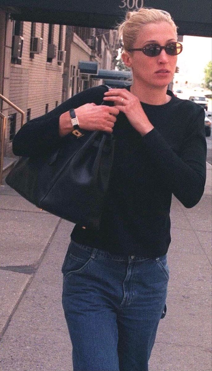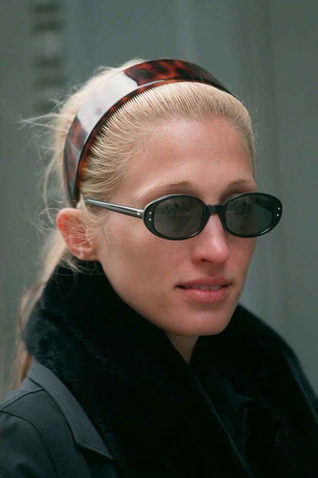 Carolyn’in stilinin bugünden bakınca hâlâ güncel görünmesinin nedeni, trend olmaktan çok bir karakter taşıması. Logolar yok, dikkat çekme isteği yok ama her şey çok net. Ton ton nötrler, keskin kalıplar, temiz çizgiler… Ve hep aynı hissi veren parçalar. Crisp beyaz gömlekler, uzun siyah paltolar, asetat güneş gözlükleri, tortoise tokalar, Levi’s 517’ler. Aksesuar neredeyse hiç yok gibi, olan da sessiz bir detay olarak kalıyor.