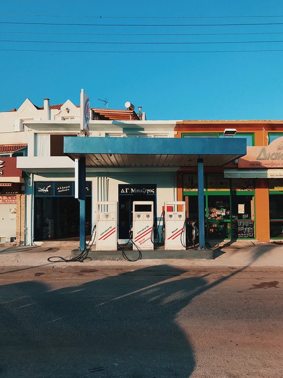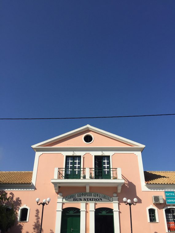 Argostoli adanın merkez bölgesi. Taksi 20 euro’ya götürüyor.. Taksicilerin taksimetreyi açma gibi alışkanlıkları yok diyebilirim, dolmuş usulü çalışıyorlar J Bence kalmak için ideal bölge. Havaalanından 15 dakika uzaklıkta. En kalabalık bölge burası. Müzeler, cafe ve barlar, birkaç mağaza, hediye dükkanları diğer her şey burada toplanmış durumda. Akşamları klasik sakin bir yazlık yeri gibi oluyor. Sabah sokaklar boş ve güneş henüz doğarken sarısının en sıcak tonlarıyla gölgeleri kovalıyor. Muhtemelen 60’lardan kalan nostaljik bir benzin istasyonu, market tabelaları, düz ve tek katlı evleriyle manzara, Lana Del Rey’i eksik, vintage bir müzik videosuna benziyor.