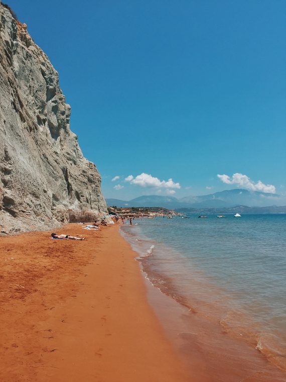Argostoli ‘den feribotla karşıya geçmek gerekiyor. Oradan da yaklaşık 20 dakikalık sürüş ardından kızıl kumu, plajı çevreleyen beyaz kayalık tepeleri ve dağ yamaçları gerçekten güzel fotoğraf veriyor. Epey uzun olan plajda dip dibe birkaç işletme var ancak hepsi birbirinden soğuk ve kötü işletiliyor. Halbuki potansiyeli belki de diğer tüm plajlardan daha fazla fakat hiçbiri olmamış. Denizi de cam gibi olmasına karşın kumun renginden dolayı diğer koylardaki gibi görünemiyor. Çok daha turistik bir bölge gibi, pek genç de sayılmaz kalabalık. Kumu özellikle tercih etmiyorsanız gitmenize gerek yok bence. Zaten tekne turu yaparsınız duraklardan biri genellikle Lixouri oluyormuş.