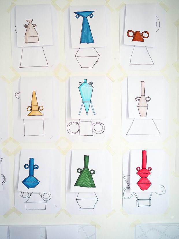 Aslında tasarlama sürecinin önemli kısmı işin başındaydı. Başta Akdeniz ve Anadolu medeniyetlerinin medeniyetlerinin yarattığı ürünlerin formlarının soyutlamalarından bir tasarım grameri yarattım. Şimdi yaptığım şey bu gramerden ne kadar farklı tasarım üretebilirim diye denemeye devam etmek.