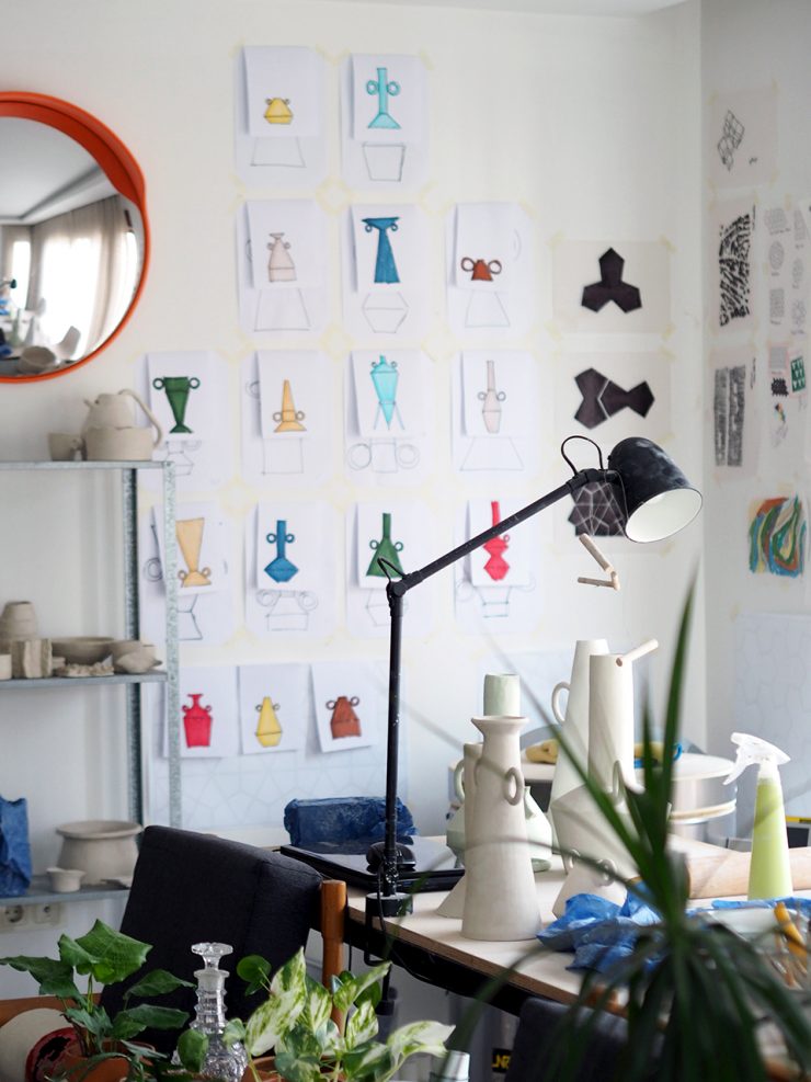 Sürekli eskiz yapıyorum, defterlerim halka vazo çizimleriyle dolu, belli zamanlarda da bu çizimleri tarayıp üretmeye değer olanlara karar veriyorum ve üretmeye başlıyorum. Genellikle gece çalışıyorum, stüdyomla evimin aynı yer olmasının böyle bir avantajı da var, istediğim saatte çalışabiliyorum.