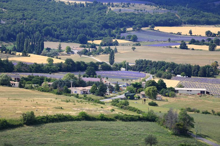 Buraya dağ manzarası ile daha güzel görünen tarlalar eşliğinde ilerledik. Uzun bir fotoğraf molası vermeyi planlamıştık ama gittiğimizde bazı lavantaların hasat edildiğini gördük. Yine de oldukça güzel bir manzara vardı.