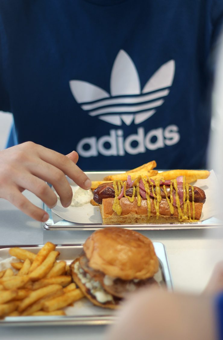 İzmir usulü kokoreç, sosis ve kaburga gibi seçenekler de mevcut. Et yemeyi tercih etmeyenler için falafelli burger de var.