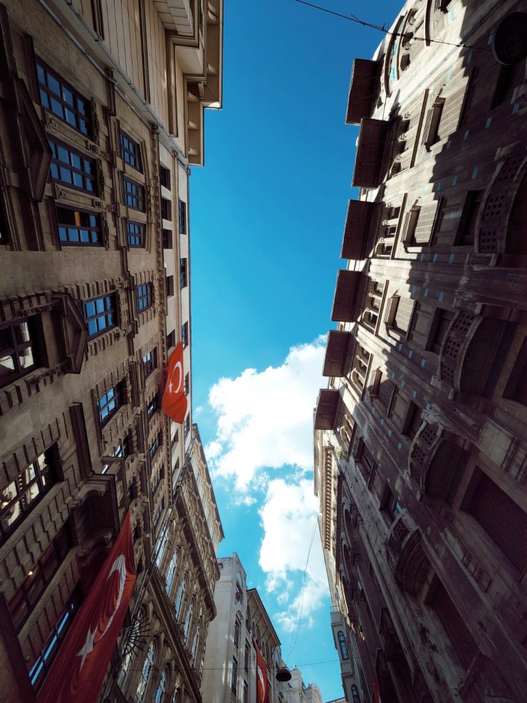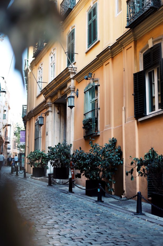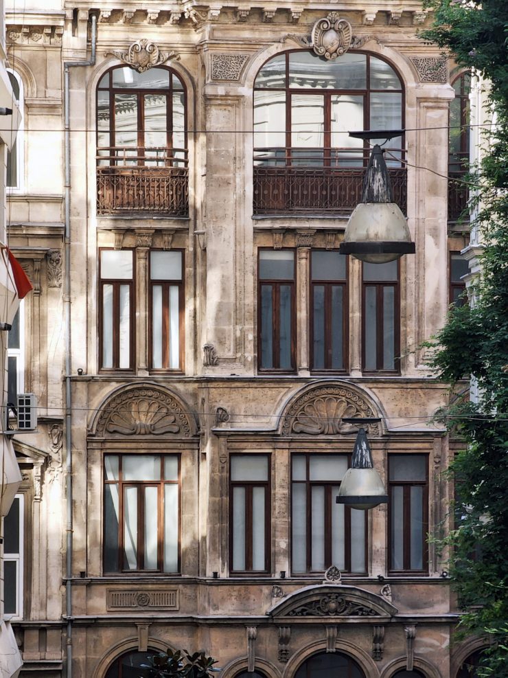 Asmalımescit sokaklarından geçerek Pera’ya doğru devam ediyoruz. Her bina birbirinden güzel ve tarihi. Meşrutiyet Caddesi’ne çıktığımız anda başımız hep yukarılarda yürüyoruz çünkü her seferinde binaların bambaşka güzellikteki mimari detaylarını yakalıyoruz.