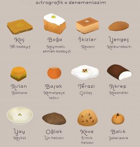 Burçların sevdiği tatlılar değil, burçları en iyi yansıtan tatlılar düşünülerek hazırlanmıştır. Neyi nere göre eşleştirdiğime gelince; Tatlıların yapısı, ağızda dağılışı, bıraktığı etki, tatlıların içeriği, tat...