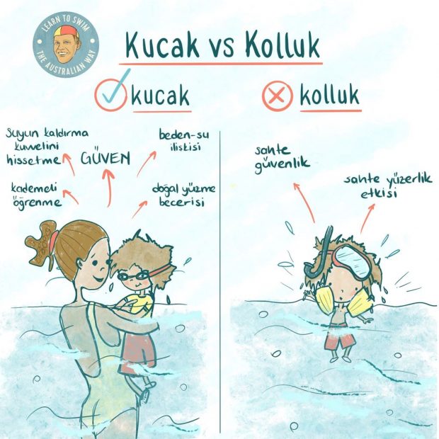Anneler, babalar. Suya çocuğunuzla birlikte girin. Kucakta girin. Tene tene temas edin. Önce ona kendini güvende hissettirin. Suyu güvenle deneyimleyen çocuklar kısa sürede suyun büyüsüne kapılıyor. Telefonsuz ekransız bu özel anların tadını çıkarın.